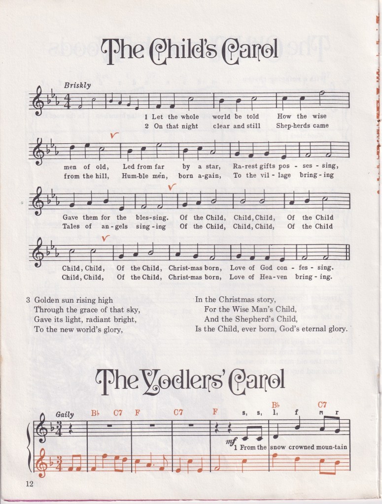 Next, is Lullaby for Baby Jesus. A Christmas carol from Brazil, to follow one from Wales. The compilers of each term’s songs had huge musical hinterlands, of the type that have perhaps changed beyond recognition over the years. In a sense, they were aural historians who were saving tunes and lyrics for posterity. It has beautiful, tender lyrics that make it perfect for Nativity plays. I wonder if it was used by schools for that purpose at the time? Whether it was or not, it is another carol that has been overlooked by the internet, so below you will find the sheet music in the hope that someone can reconstruct it.
