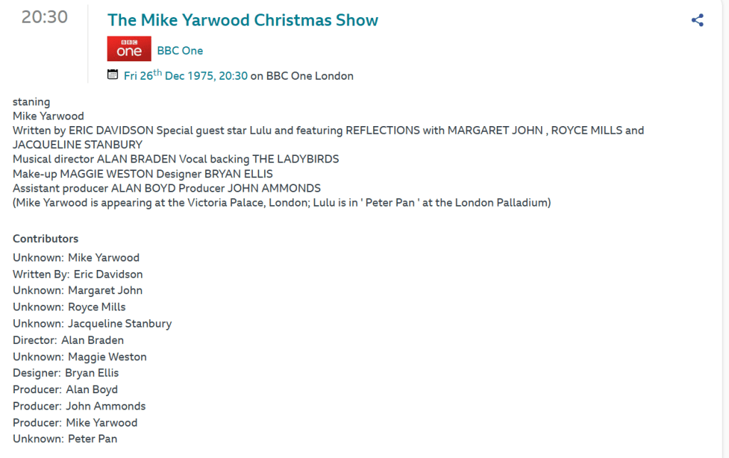 So there you have it. The good, the bad and the average of the BBC1 offerings for the three days of the festive season in 1975. I really enjoyed wandering down memory lane thanks to the Radio Times Genome Project so join me tomorrow when we will look at Christmas TV for 1977.