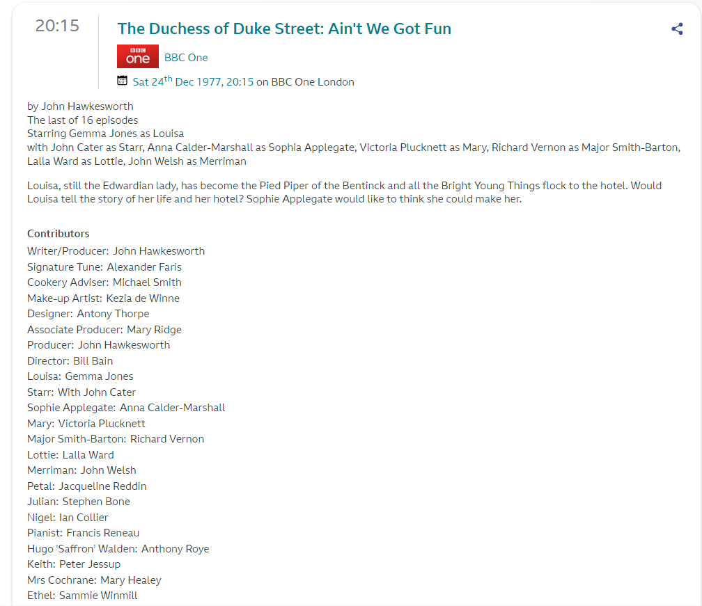 It is one of the best ever Christmas specials because it features the four main actors on their own with only one other character appearing briefly. The interaction between the four is sublime – but I don’t want to pre-empt my blog post! In terms of the TV, there is a tendency to throw everything they can at a ‘captive audience’ on Christmas Day and Boxing Day to maximise audiences. Even in the 70s with only three main channels they were probably right, but nowadays with streaming, hundreds of channels and multiple screens they have very little chance to get anyone outside a core audience tuning in.