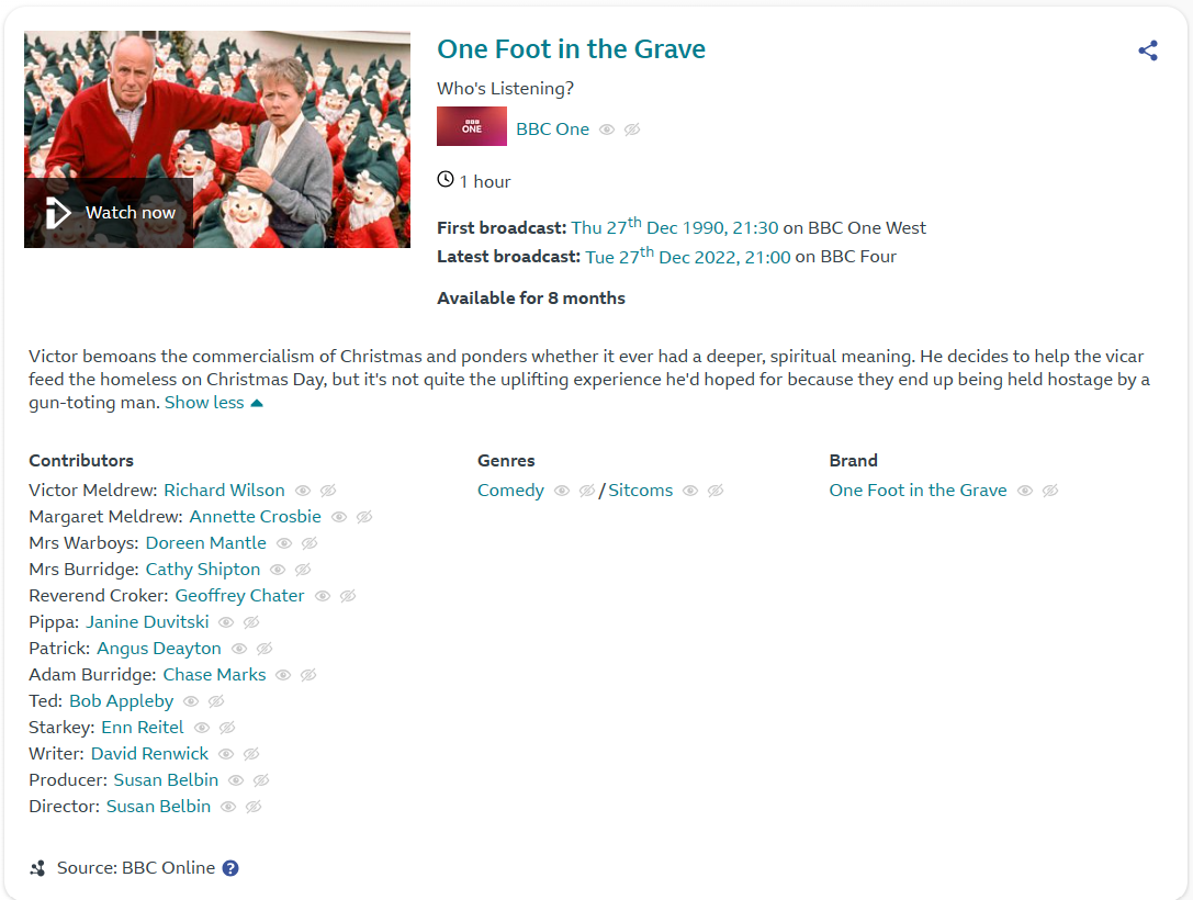 It seems amazing that this is nearly 33 years ago, as the memory of first watching it still brings back such clear memories of our first Christmas together. It is a Christmas special for the ages, a perfect mix of pathos, philosophy and farce. If you have never seen it, hunt it down on Brit Box or maybe iPlayer, or buy it on DVD if you feel inclined to treat yourself to one of the most consistently brilliant comedies in British TV history.