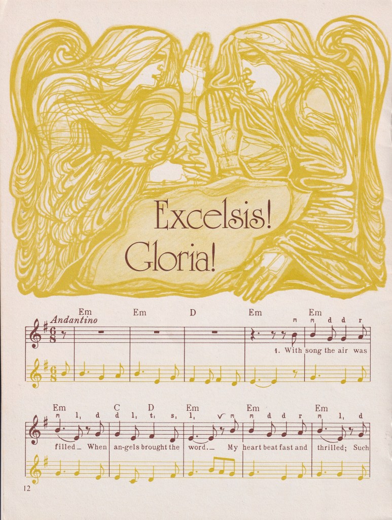 Above you will see the first page of a song called Excelsis! Gloria! which, in common with a number of others in my two Singing Together at Christmas entries has been lost in the mists of time. If you are a musician and could find the time to play it and record it that would be incredible. Whether you can or not, I think you will find the second entry as fascinating as the first.