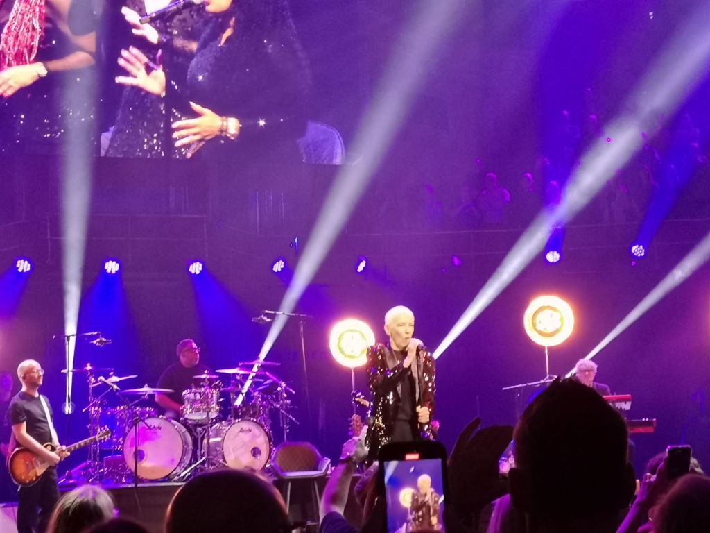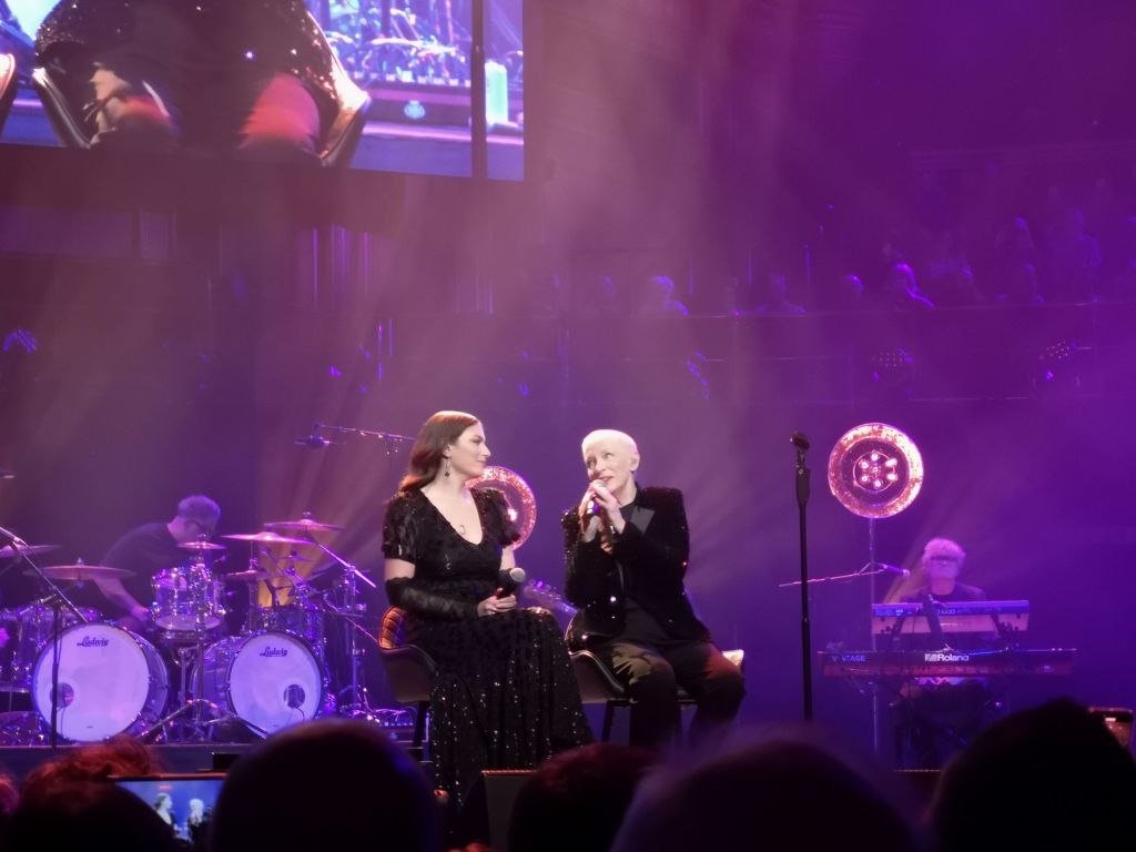 The first of two surprise guests was introduced for the next song. Hozier, a massive presence both vocally and physically, was introduced to sing a duet with Annie on one of my favourite songs of the 2010s, the immense Take Me to Church. It was an absolutely stunning meeting of two great voices that blended together perfectly on a version of the song that could really do well if it was rereleased. It was definitely one of the absolute highlights of the set. Their second duet was seamlessly blended into the first, this time I Put a Spell on You. The classic song recorded by Screaming Jay Hawkins, Nina Simone and Creedence Clearwater Revival could not have been sung any better on any of those versions. It was Annie Lennox at her absolute best and the audience loved it. The next song, Missionary Man, showed the strength of Annie’s catalogue because it was not a standout. For many other artists it would have been one of the strongest songs of the night. The final two songs of the set were a fantastic finish by any standards. Why is one of the most memorable songs of her solo career and here it was delivered with power and beauty that just stilled and mesmerised the audience who had previously been on their feet and singing along. It was a perfect example of an artist with the power over an audience like very few others. The finale was a duet with Paloma Faith on a song that summed up the message of the entire night. It was of course Sisters Are Doing It For Themselves which led to a huge Royal Albert Hall singalong. That was nothing compared to the singalong for the encore, the timeless and brilliant Sweet Dreams (Are Made of This). The perfect end to a perfect night in the company of the ageless and indefatigable Annie Lennox.