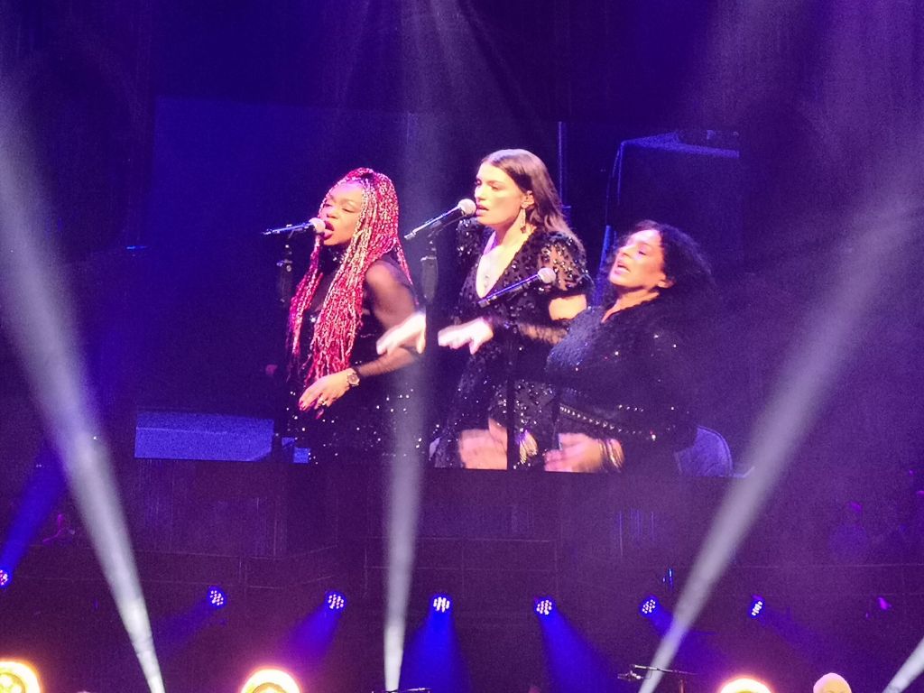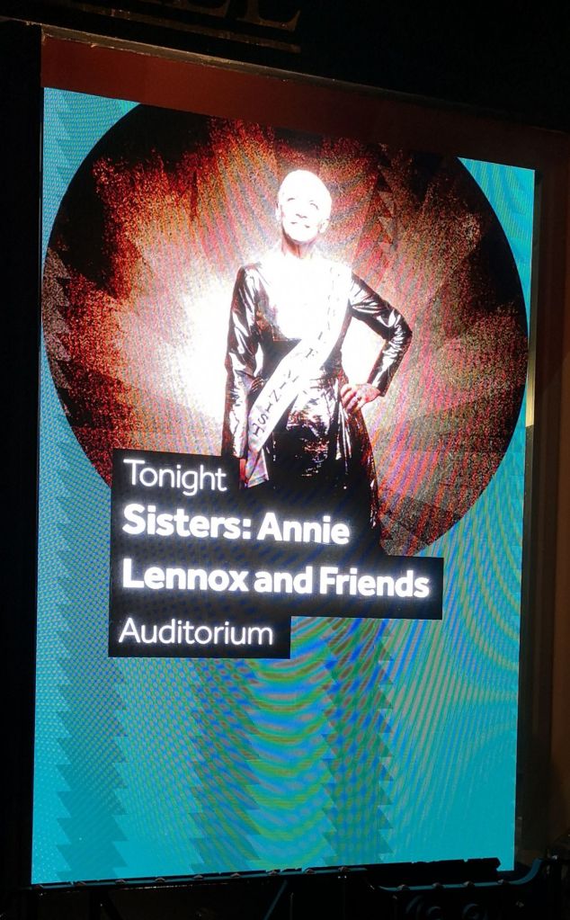 This was a concert my wife in particular never expected to be able to see. A massive fan of Annie Lennox since her Tourists days, Janet has all of Annie’s solo recordings on CD, but with it having been 6 years since Annie last sang in public, we thought her concert days were over. When Sisters was announced, in aid of Annie’s own organisation The Circle our daughter stayed on Ticketmaster for an hour and a half, and finally secured two standing tickets which we were really happy with. Nearer the time I saw a competition run by For One Night Only events offering top price tickets plus exclusive access to Annie’s soundcheck. Well, that was my slightly (very) leftfield Valentine’s Day present for Janet, but as the money was going to charity and we had tickets anyway, I thought why not? You guessed it – we won! So, my review of the night starts with the soundcheck.