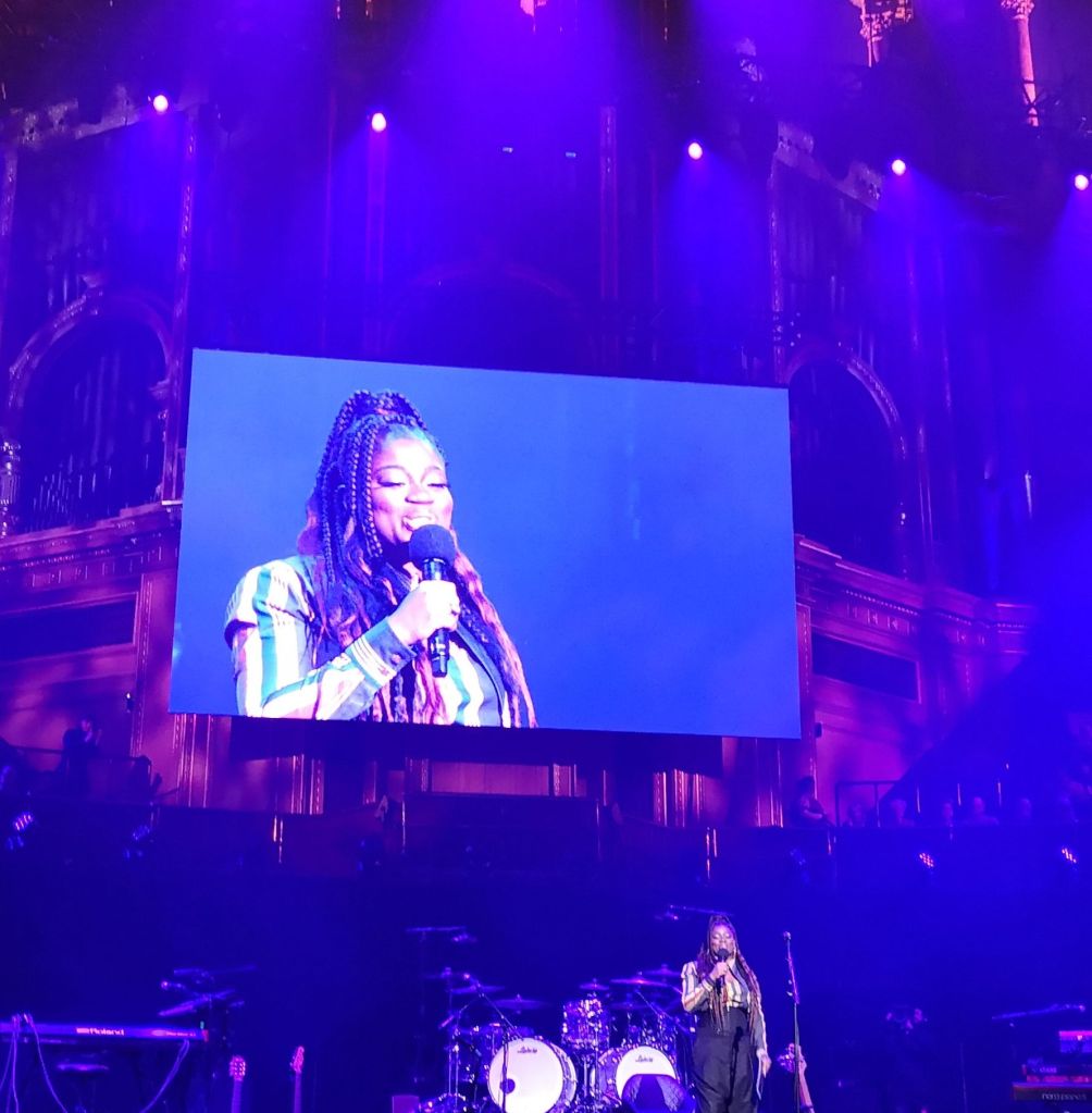 The second part of our prize were seats just seven rows from the front of the stage! It’s as near as we will probably ever get, so we were determined to enjoy every minute. Clara Amfo was our host for the evening and she was brilliant throughout. Clara’s introductions for each of the artists were beautifully judged and even those that we didn’t know came with an added sense of anticipation thanks to her. Rioghnach (pronounced Ri-uh-nah) Connolly, the BBC Folk Singer of the Year, sang three beautiful songs, Land of my Other, Carry Your Kin and Too Many Have Gone. Her stunning voice and incredible flute playing completely entranced the audience and no doubt sent many of us to Spotify and YouTube as I have no doubt that she won many more fans. Irish folk singing is something I have a natural affection for, and this was a particularly fine example of how good it can be. As a teacher I did appreciate the ‘teacher look’ she gave the late comers a few rows in front of us! The subtext of ‘What time do you call this?’ was abundantly clear! It certainly amused me.