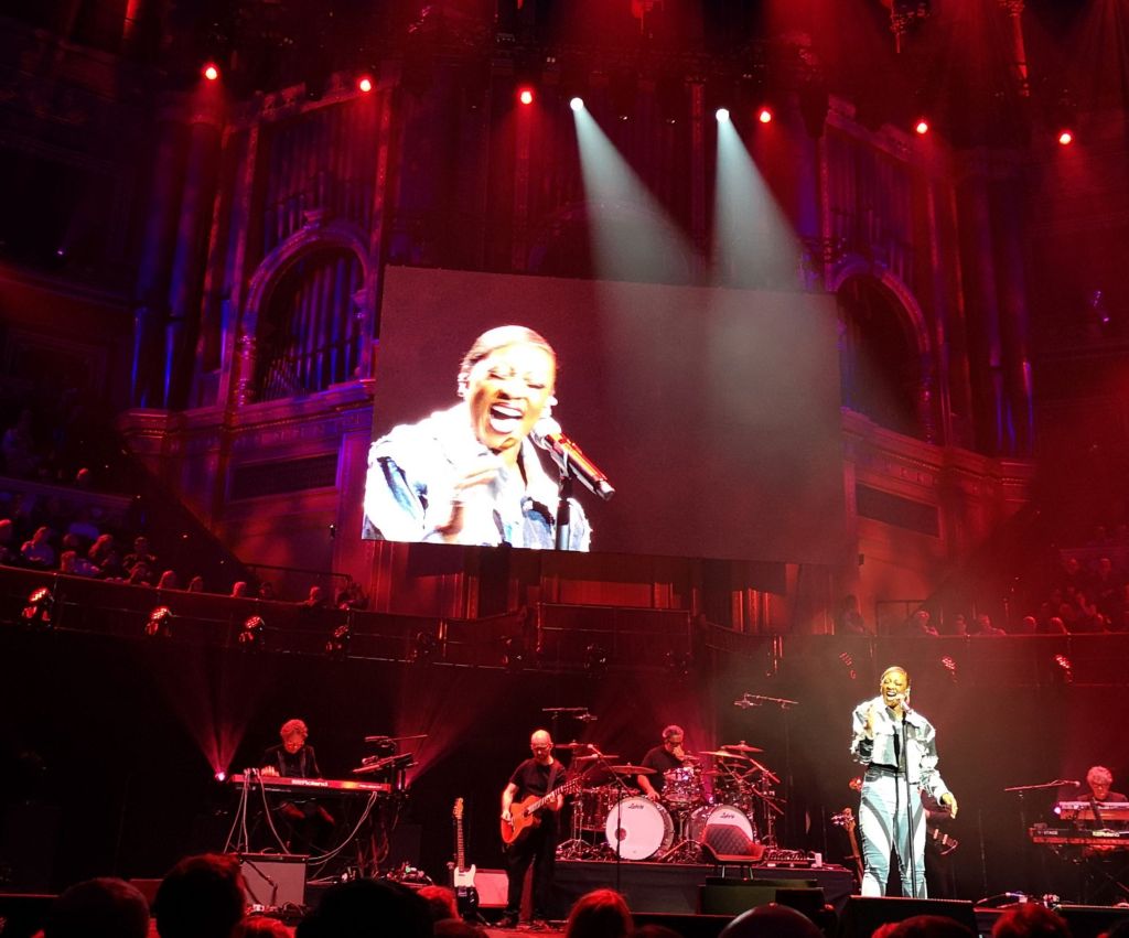 The final artist of the first half was the most well known of the quintet, . A soul singer, actress, campaigner, fundraiser and musical theatre veteran, Beverley Knight OBE. Shoulda, Woulda, Coulda got the first singalong of the night as she filled the Hall with her amazing voice. Her next track was the very appropriate Sisters, Sisters and she finished her trio of tracks with the positive Everything’s Gonna Be Alright, a message that needs to be held on to in these dark times. She brought the first half to an uplifting close and set the stage for the second half with the legend herself, Annie Lennox