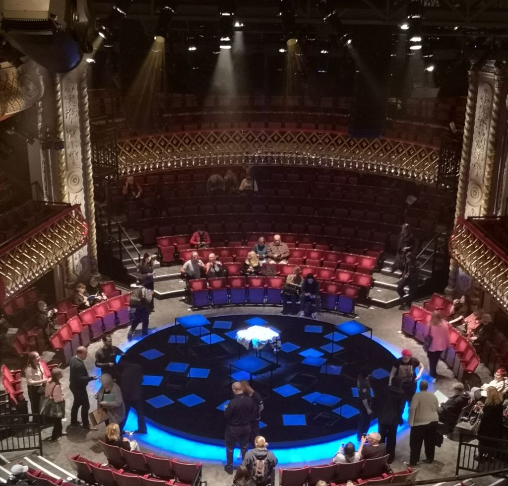 When we got inside the seats had generous legroom when compared to the older theatres, and you could see the stage with no problem. As you can see, the stage was in the round, something that will continue throughout the next year, another innovation for me as I have not seen a play in the round before. Having such a clear focal point really suited this play as it drew your entire attention to one life ‘in the round’.