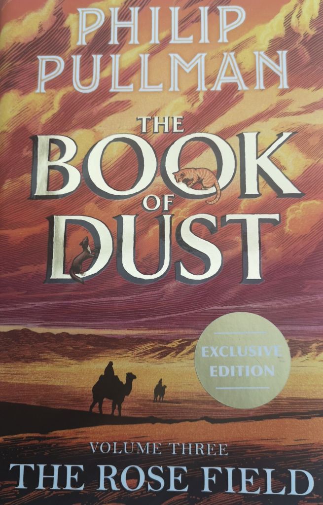 I manage screen time by reading paperback books and, very occasionally, hardback books if they are very special. One such book is the final story from Lyra’s universe. The first three books that make up the His Dark Materials trilogy were ones I read to my children. We followed the adventures of Lyra and Will to the surprisingly bittersweet end. The Book of Dust trilogy started with La Belle Sauvage, continued with The Secret Commonwealth and ends with The Rose Field.