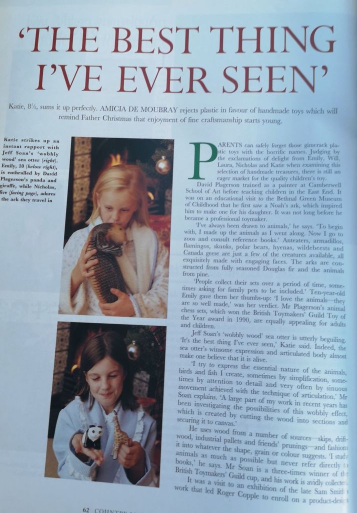 The idea of tradition is front and centre in the article ‘The Best Thing I’ve Ever Seen’ where children are introduced to the delights of traditional wooden toys to enable them to reject plastic alternatives. When you see the backgrounds of the houses, you realise that, like everything else in the magazine, it is aimed squarely at high end consumers of all ages. Carved animal chess sets, hobby horses and traditional farm sets are also more likely to reflect the lives of the children involved, thus increasing the interest level. Don’t get me wrong, I think that the appeal of a long lasting handmade toy is timeless, but it is very much a niche product that would be less likely to appeal to children in the towns and cities that lie outside the rural heartland of the readership.
