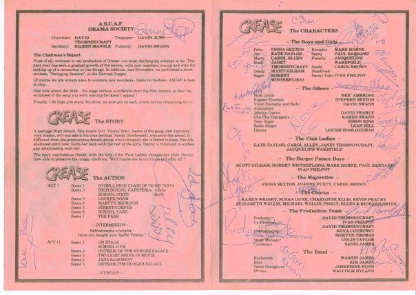 The next play was Grease. I hadn’t become as obsessed with the musical as most back in 1978 and when we started in late 1986 I wouldn’t have listened to the songs in 7 or 8 years. I was not sure what part I wanted, if any, but as I had promised myself I would give it a go I auditioned. I got given the part of Johnny Casino, the lead singer of the band, Johnny Casino and the Gamblers, at the high school dance. The prospect terrified me, especially when I found out that I would be backed by a live band. How could someone like me live up to singing in front of musicians who were well trained and highly talented? I had such a case of Imposter Syndrome that I tried to pull out. Luckily, the director who had seen everything before talked me round and gave me the opportunity to give my best. I decided to get into character so I went to the barber’s in town and asked for a fifties style DA cut. The teasing I got from the other cast members was incredible, but it really made me feel like I belonged. I had a huge wobble on the morning of the opening performance, but I had come too far to back out now, and the first night was such a great experience – well at least once I got on stage it was! Having a band behind me was a massive help and I just went into a zone that allowed me to relax and heightened my senses at the same time. It was an experience that money couldn’t buy and I wanted more!