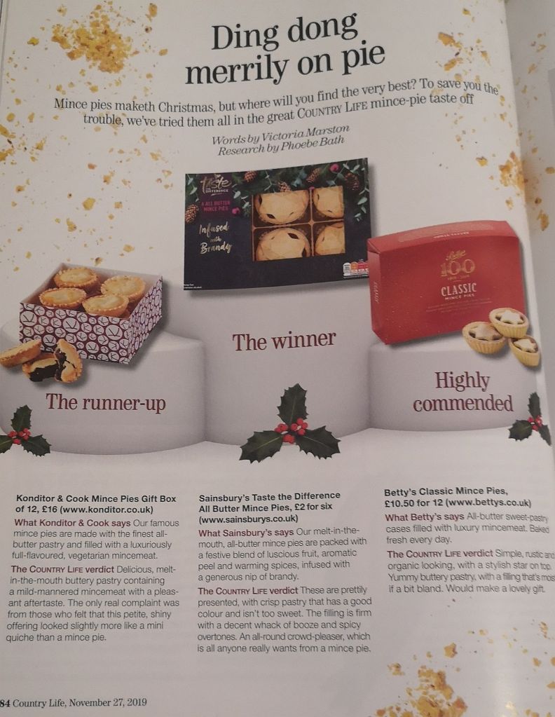 The best mince pies are put to the test because, as Country Life states and I agree wholeheartedly, ‘Mince pies maketh Christmas …’! Of course, homemade is the best but if you aren’t going to make them from scratch then this was a guide to the best options. Interestingly, Sainsbury’s beat Konditor and Cook and Fortnum and Mason whose mince pies were four and six times the price respectively! In many magazines, you would be told how best to cook a turkey. In this magazine there are some interesting ideas for red cabbage instead. There is also a recipe for venison burgers but they’re too deer for me!