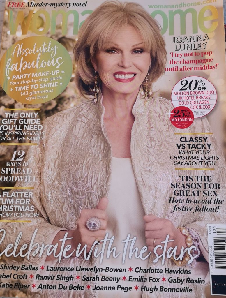 The first thing you notice is the difference in the front cover. In the middle you have the marvellous Joanna Lumley. None of the old magazines I looked at had celebrities on the cover, although some that I didn’t look at may well have done, but then we didn’t have a real celebrity culture until quite recently. Christmas was the main selling point so various Christmas themed covers were the order of the day. Now, most of the magazines on the supermarket shelves feature a famous person to try to entice the casual reader to part with their money. Now, looking at the bottom of the front cover you see a list of twelve further celebrities in a section called ‘Celebrate with the stars’. When you see the names, it is quite clear that the magazine’s demographic is skewed towards the older female reader as the average 25 year old is unlikely to see the names Laurence Llewelyn-Bowen, Annabel Croft, Katie Piper and Hugh Bonneville and think that they have to read on. As well as the list at the bottom, there are seven ‘cover stories’ and a quote from Joanna Lumley. Why is there so much going on here? Well, as I will mention more than once, magazines are fighting a desperate rear guard action against the Internet, and on there we are used to a blizzard of information before deciding what to click on. Woman & Home, like pretty much all other magazines nowadays, has a digital version and this magazine cover is clearly designed to be seen digitally.